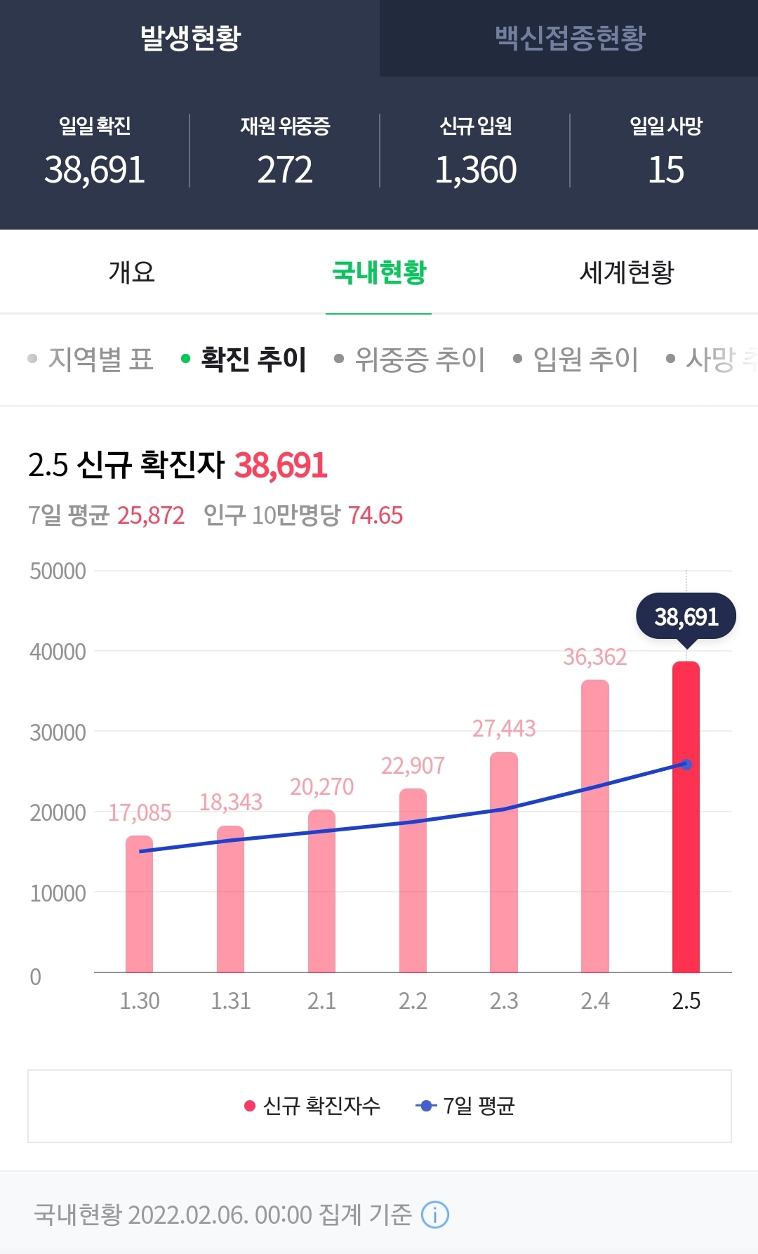 코로나 확진자 수치가